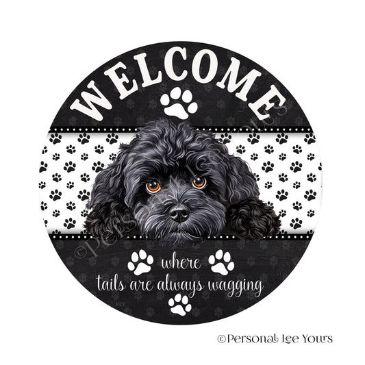 Peeking Pups Wreath Sign * Portuguese Water Dog * Round * Lightweight Metal