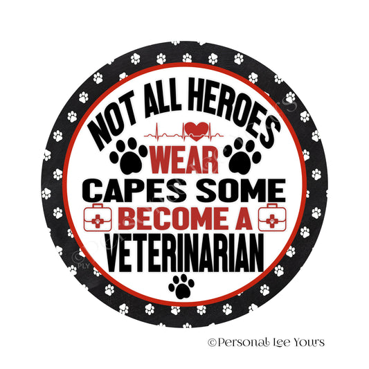 Pet Wreath Sign * Not All Heroes Wear Capes Veterinarian * Round * Lightweight Metal