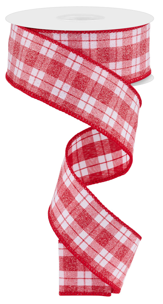 Wired Ribbon * Crystal Shine Plaid * Red and White * 1.5" x 10 Yards * Canvas * RGE1997F3