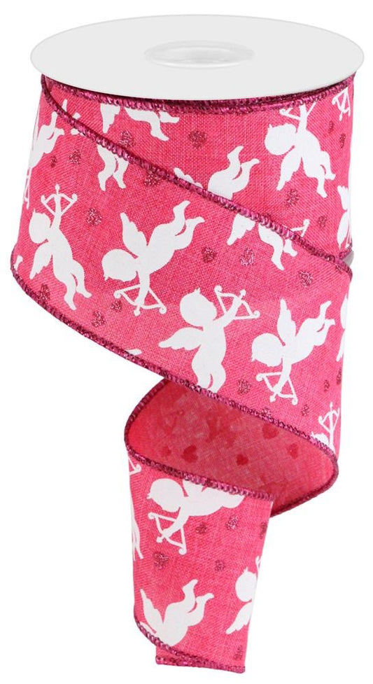 Wired Ribbon * Cupid * Hot Pink, White and Pink Canvas * 2.5" x 10 Yards * RGC179511