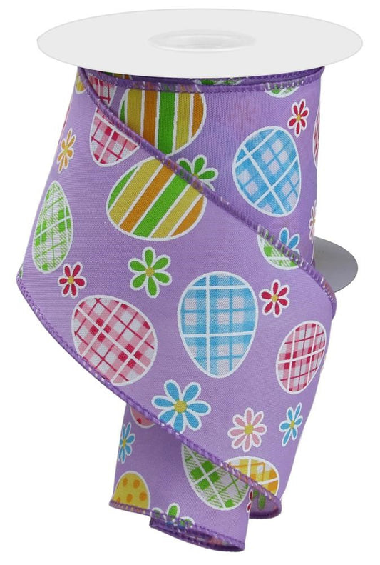 Wired Ribbon * Check Plaid Eggs With Daisies * Lavender, Blue, Lime, Pink, Gold and Yellow PG Canvas * 2.5" x 10 Yards * RGE140613
