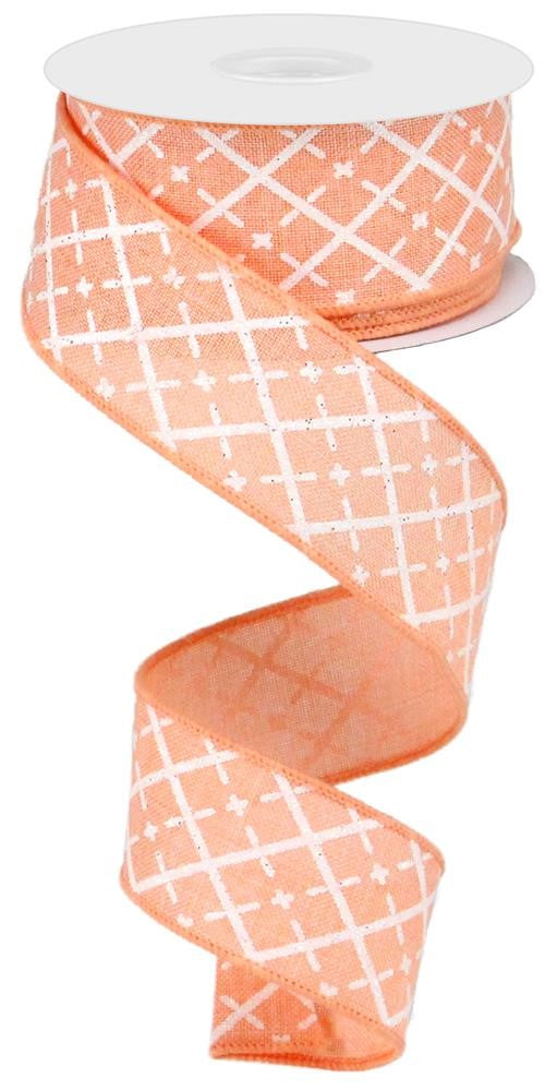Wired Ribbon * Glittered Argyle * Peach, White and Silver Canvas * 1.5" x 10 Yards * RG01901ET
