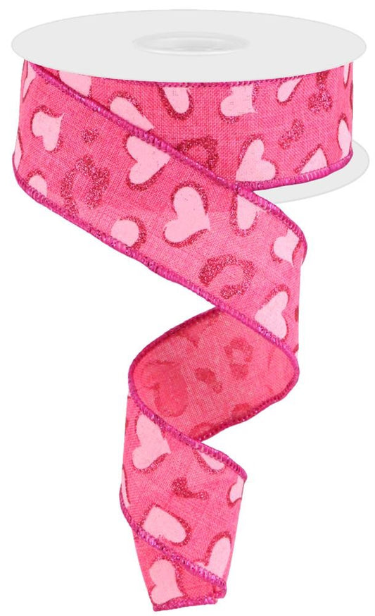 Wired Ribbon * Heart Leopard Spots * Hot Pink and Pink * 1.5" x 10 Yards * Canvas * RGC189411