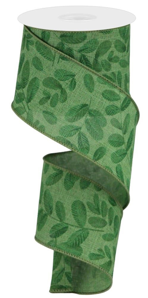 Wired Ribbon * Bold Leaves * Clover, Green, Dk. Green and Sage * 2.5" x 10 Yards Canvas * RGC1198AM