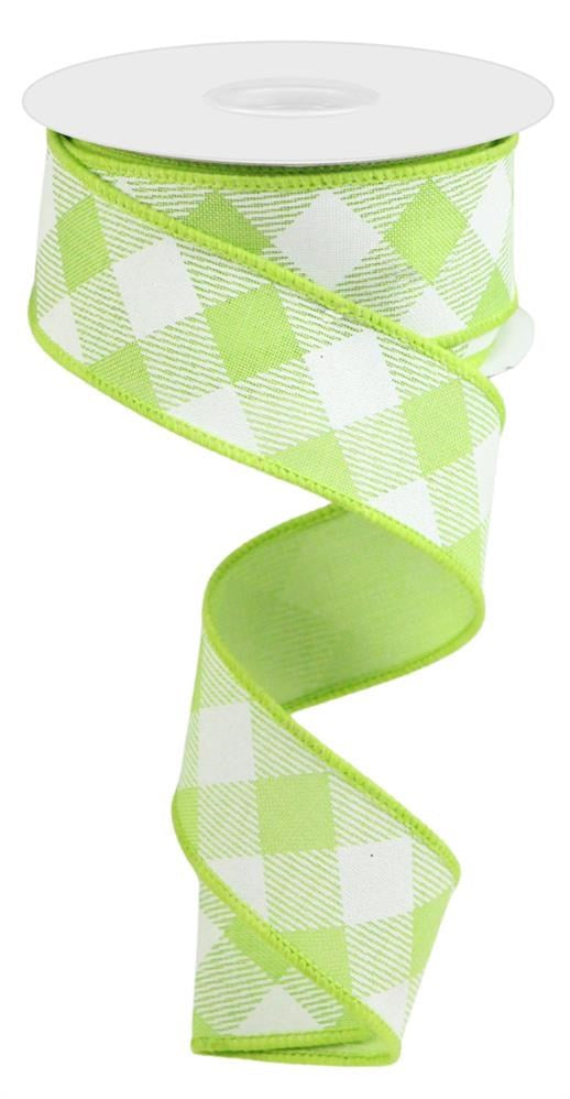 Wired Ribbon * Diagonal Check * Bright Green and White * 1.5" x 10 Yards * RGA1264H2 * Canvas