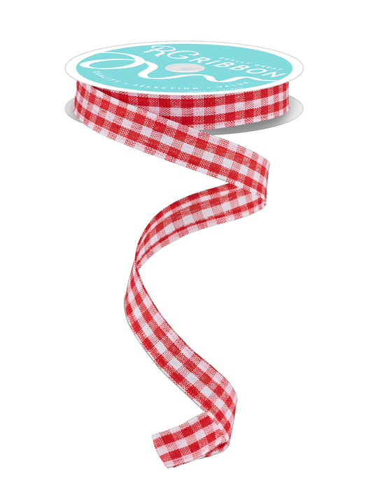 Wired Ribbon * Gingham Check * Red and White Canvas * 5/8" x 10 Yards * RGE1207F3
