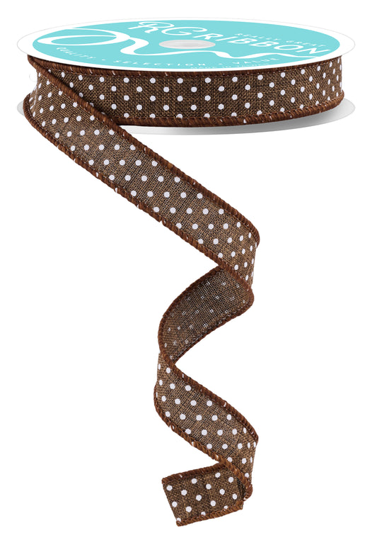 Wired Ribbon * Swiss Dot * Brown and White Canvas * 5/8" x 10 Yards * RGE177604