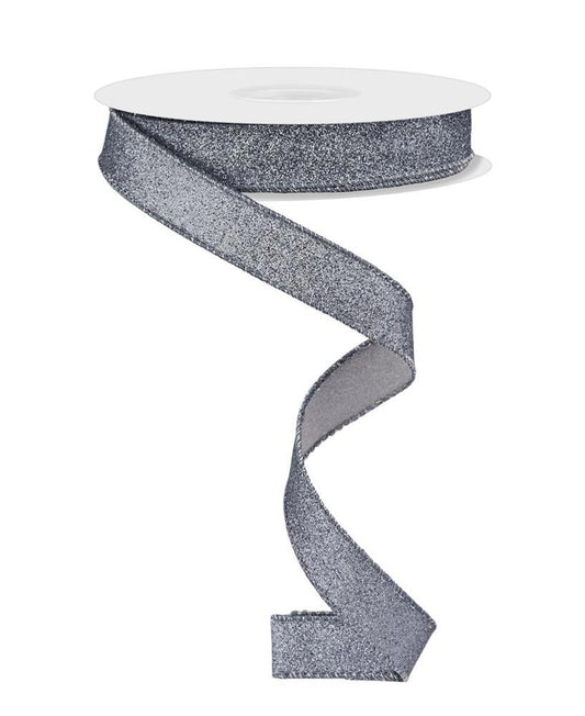 Wired Ribbon * Glitter Pewter Shimmer Canvas * 5/8" x 10 Yards * RGF1089H9