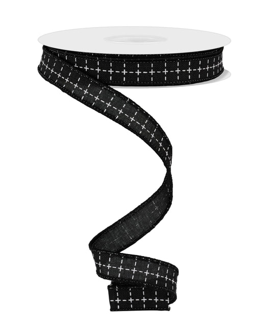 Wired Ribbon * Raised Stitch * Black and White Canvas * 5/8" x 10 Yards * RGF109002