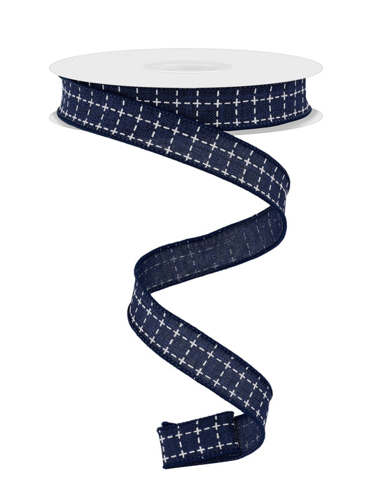 Wired Ribbon * Raised Stitch * Navy Blue and White Canvas * 5/8" x 10 Yards * RGF109019