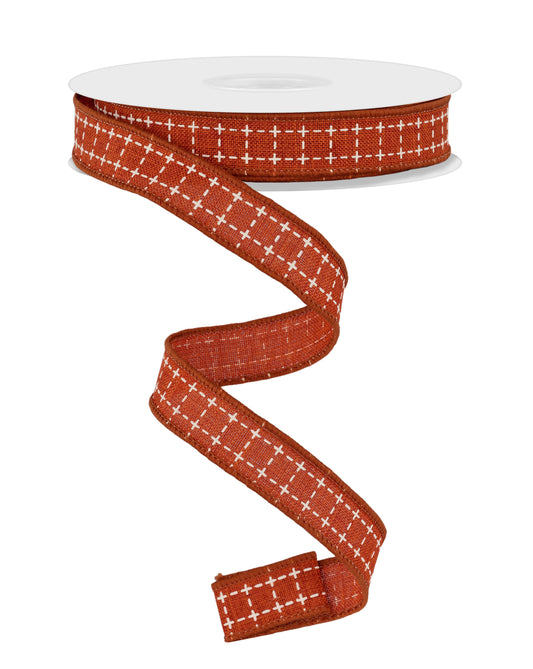 Wired Ribbon * Raised Stitch * Rust and Cream Canvas * 5/8" x 10 Yards * RGF109174