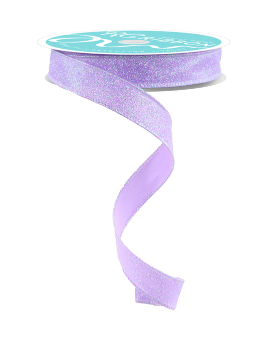 Wired Ribbon * Iridescent Glitter on Satin * Lavender * Thicker like Canvas * 5/8" x 10 Yards * RGF147813