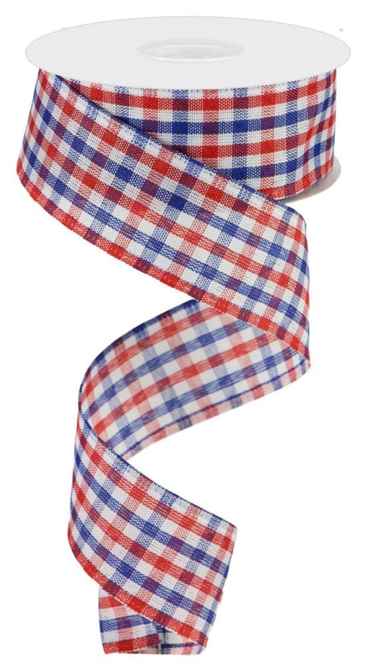 Wired Ribbon * Gingham Check * Red/White/Blue Woven Canvas * 1.5" x 10 Yards * RGA1102A1