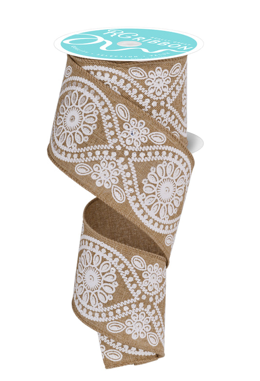 Wired Ribbon * Deluxe Wavy Floral * Lt. Beige/White Canvas * 2.5" x 10 Yards * RGE1962XR