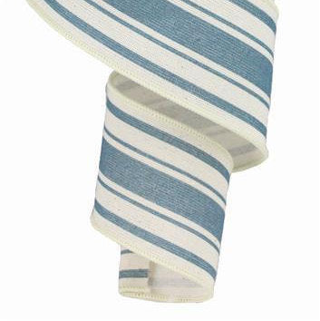 Wired Ribbon * Farmhouse Stripe * Ivory and Farmhouse Blue * Canvas * 2.5" x 10 Yards * RG01912FF