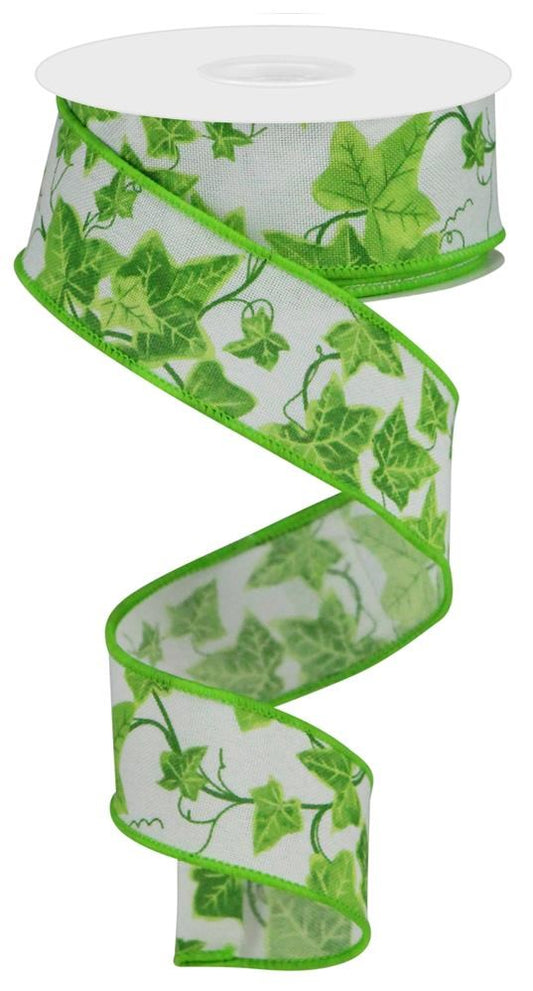 Wired Ribbon * Ivy * Multi Green and White * 1.5" x 10 Yards * RGC120027 * Canvas