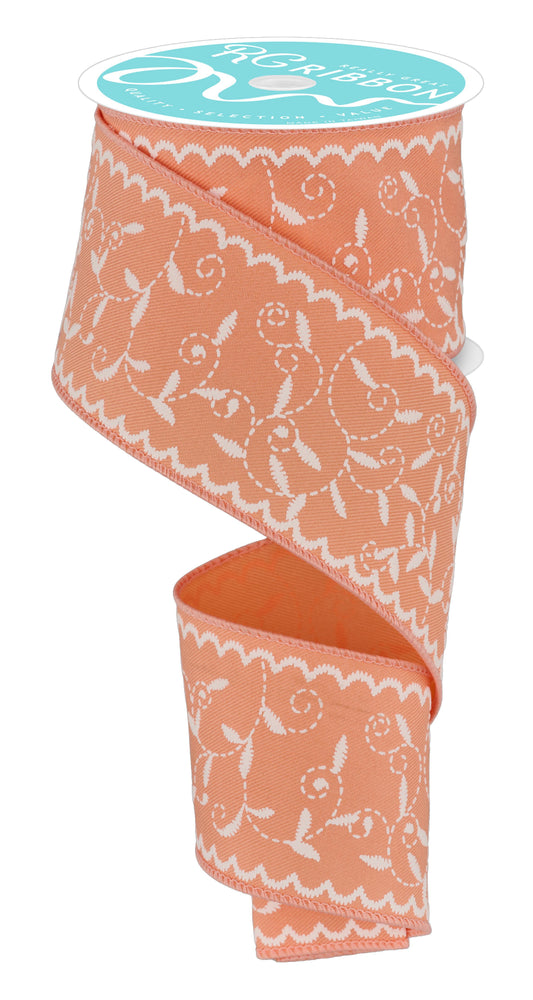 Wired Ribbon * Stitch Mini Leaf * Peach/White * 2.5" x 10 Yards * RGF117021