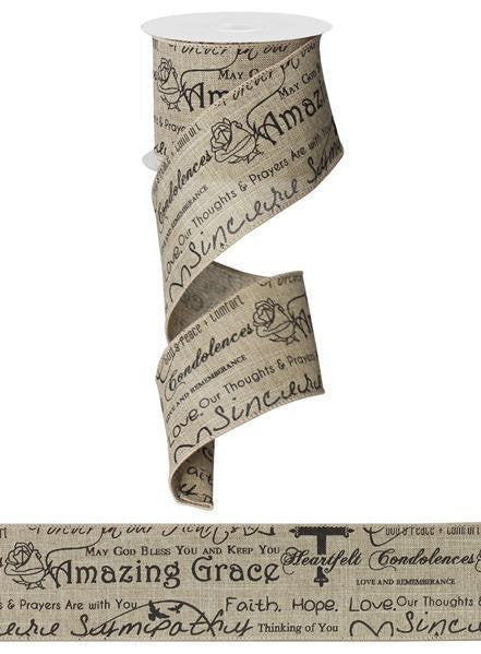 Wired Ribbon * Religious Sympathy * Beige and Black * 2.5" x 10 Yards * Canvas