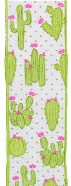 Wired Ribbon * Cactus * White, Green, Pink and Yellow Canvas * 2.5" x 10 Yards * RGA163827