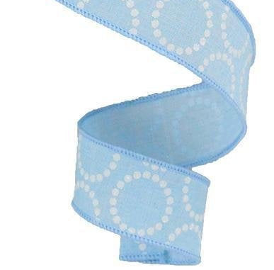 Wired Ribbon * Pearl Beads * Blue and White Canvas* 1.5" x 10 Yards * RG0130514