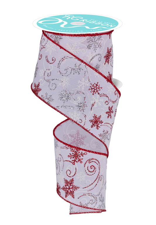 Wired Ribbon * Snowflakes Swirls * White/Red/Silver * 2.5" x 10 Yards * Canvas * RGF135567