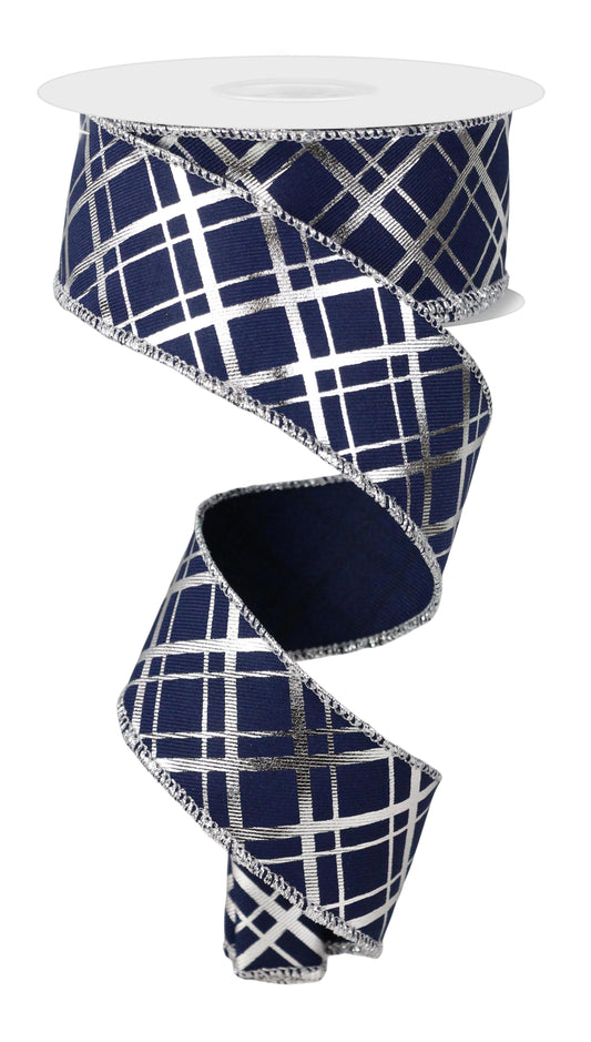 Wired Ribbon * Metallic Thick/Thin Diagonal * Navy Blue and Silver * 1.5" x 10 Yards * Canvas * RGE167363