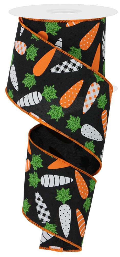 Wired Ribbon * Pattern Carrots * White, Orange, Green and Black PG Canvas * 2.5" x 10 Yards * RGE113102