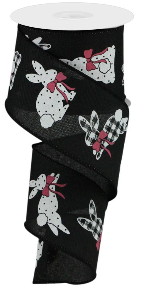Easter Wired Ribbon * Patterned Bunnies * Black, Pink and White Canvas * 2.5" x 10 Yards * RGC123502