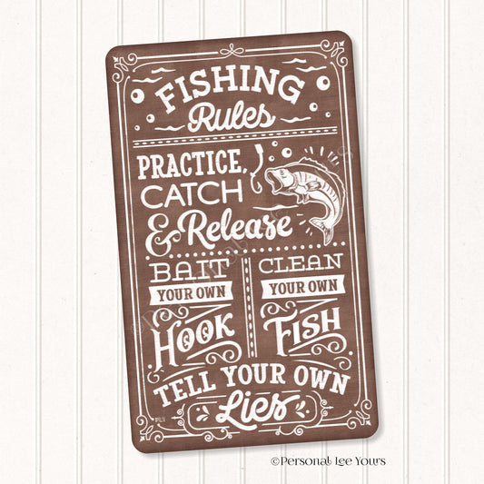 Wreath Sign * Fishing Rules * Vertical * Lightweight Metal * Black, Brown or Green