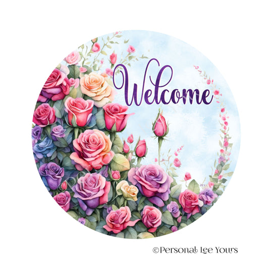 Summer Wreath Sign * Rose Garden Welcome * Round * Lightweight Metal