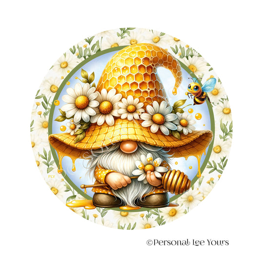 Wreath Sign * Honey Bee Gnome * Round * Lightweight Metal