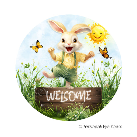 Wreath Sign * Welcome Spring Bunny * Round * Lightweight Metal