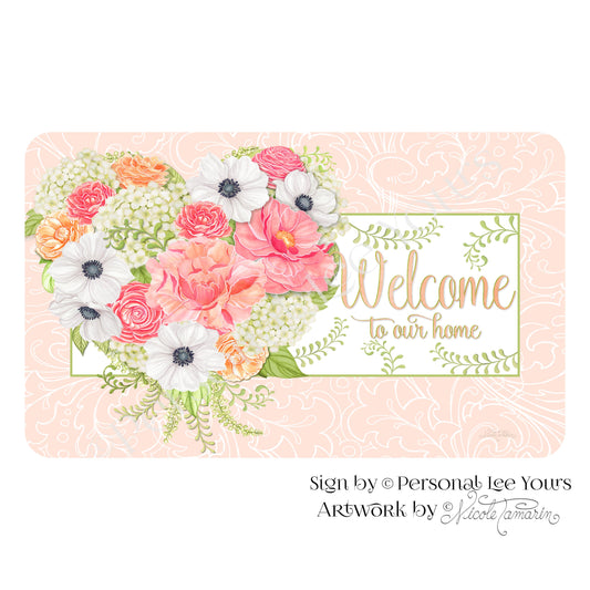 Nicole Tamarin Exclusive Sign * Floral Heart Welcome * Horizontal * 4 Sizes * Lightweight Metal