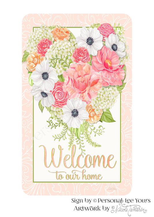 Nicole Tamarin Exclusive Sign * Floral Heart Welcome * Vertical * 4 Sizes * Lightweight Metal