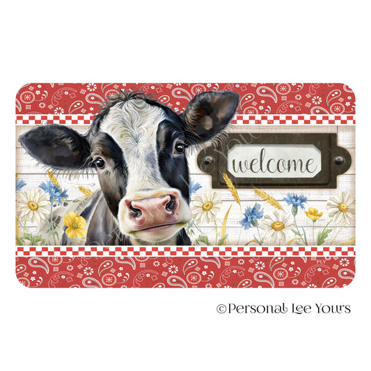 Wreath Sign * Welcome Farmhouse Cow * Holstein * Horizontal * 4 Sizes * Lightweight Metal