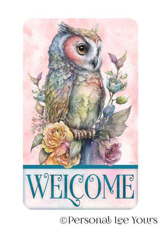 Wreath Sign * Beautiful Owl Welcome * 4 Sizes * Vertical * Lightweight Metal