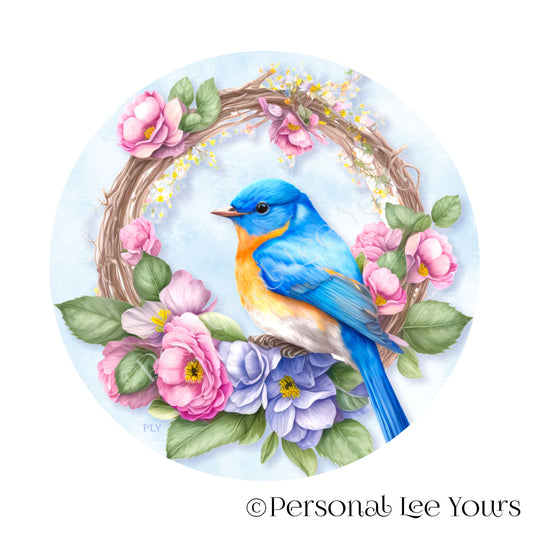Wreath Sign * Bluebird In Wreath * Round* Lightweight Metal