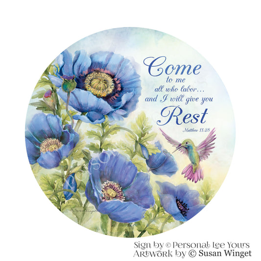 Susan Winget Exclusive Sign * Come To Me * Bible Verse * Round * Lightweight Metal