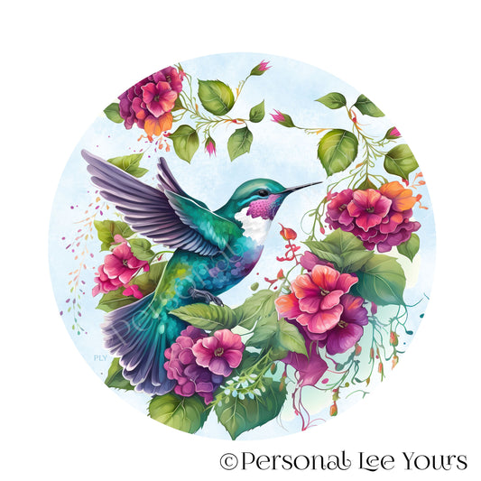 Wreath Sign * Hummingbird In Flowers * Round* Lightweight Metal