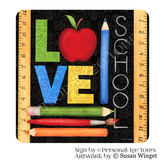 Susan Winget Exclusive Sign * Teacher * Love School * Square * 3 Sizes * Lightweight Metal