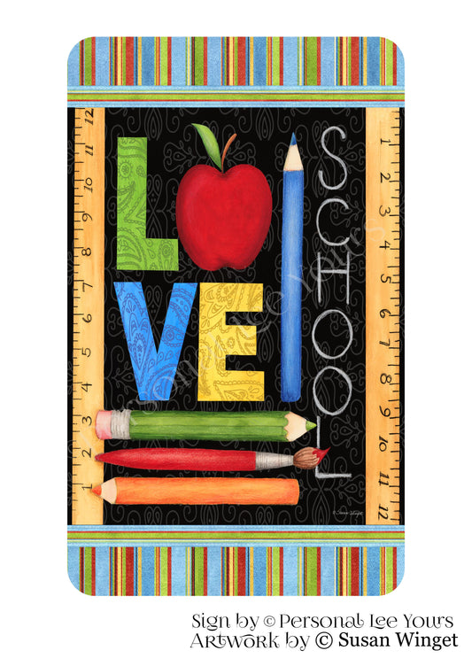 Susan Winget Exclusive Sign * Teacher * Love School * Vertical * 4 Sizes * Lightweight Metal