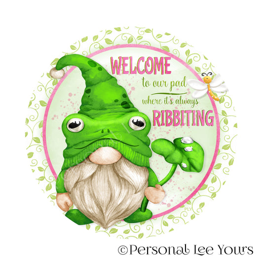 Wreath Sign * Frog/Gnome * Welcome To Our Pad * Round* Lightweight Metal