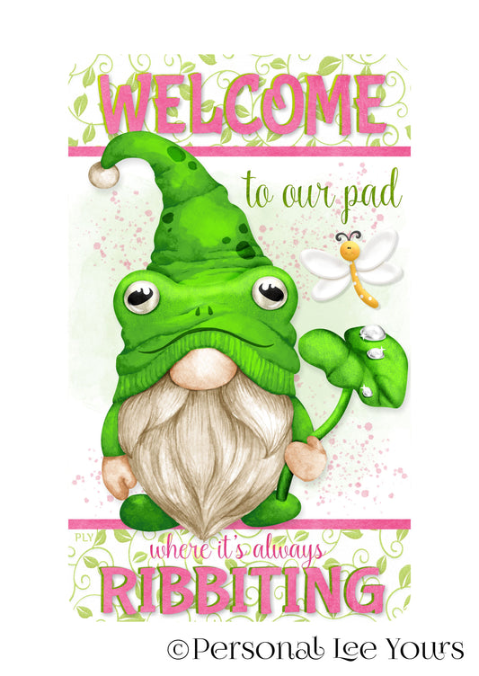 Wreath Sign * Frog/Gnome * Welcome To Our Pad * 4 Sizes * Vertical * Lightweight Metal