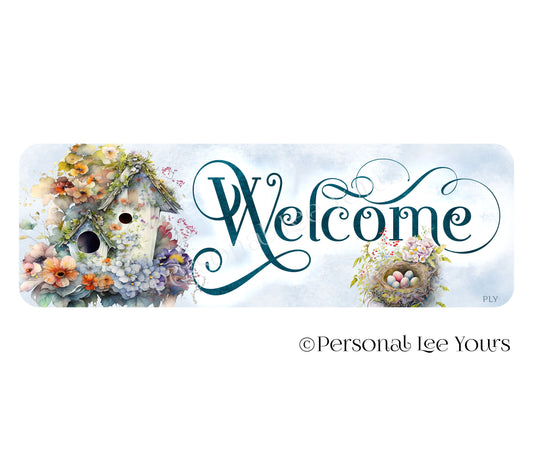 Wreath Sign * Banner * Floral Birdhouse * 4" x 12" * Lightweight Metal
