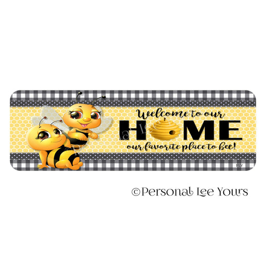 Wreath Sign * Banner * Bee * Welcome To Our Home * Gingham * 4" x 12" * Lightweight Metal