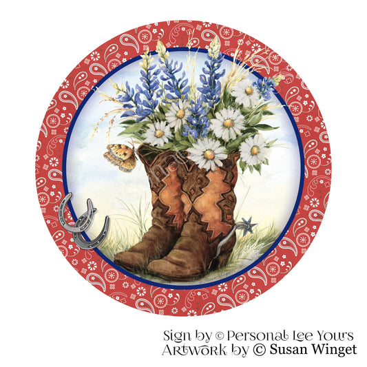 Susan Winget Exclusive Sign * Cowboy Boots * Round * Lightweight Metal