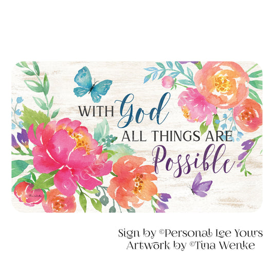 Tina Wenke Exclusive Sign * With God All Things Are Possible * Horizontal * 4 Sizes * Lightweight Metal