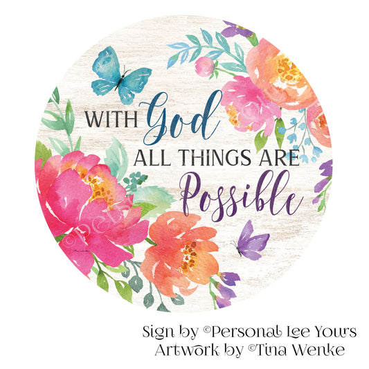 Tina Wenke Exclusive Sign * With God All Things Are Possible * Floral * Round * Lightweight Metal