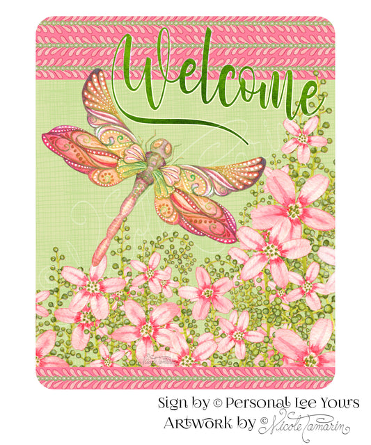 Nicole Tamarin Exclusive Sign * Dragonfly Welcome * 2 Sizes * Lightweight Metal