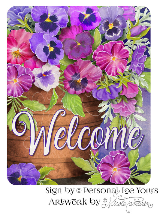 Nicole Tamarin Exclusive Sign * Pansy Welcome * 2 Sizes * Lightweight Metal